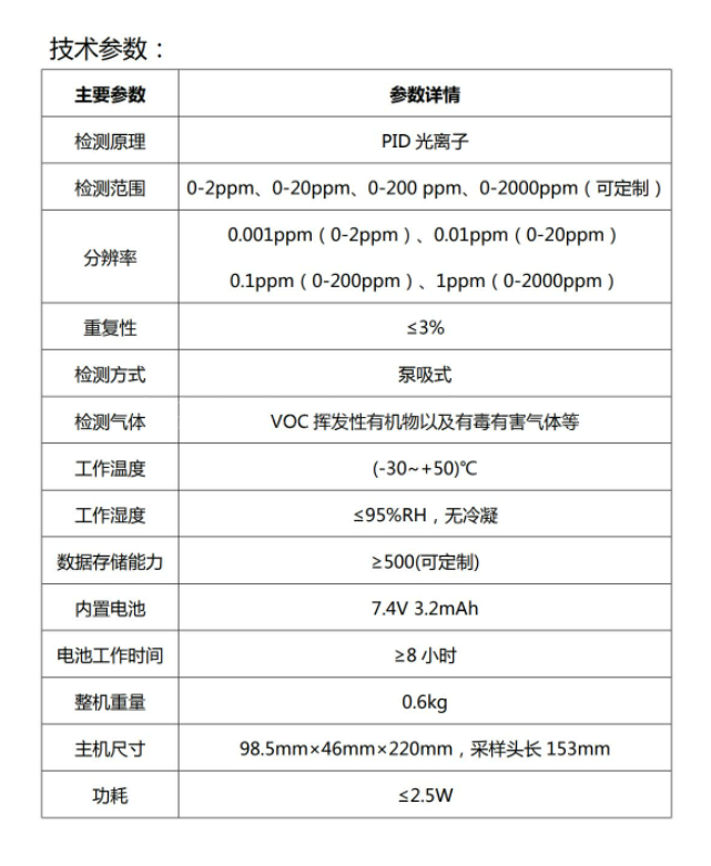 本设备适用于各种工业环境和特殊环境中的气体浓度检测,采用进口PID光离子气体传感器,响应速度快,测量精度高,稳定性和重复性好,各项参数用户可自定义设置,操作简单,仪器防尘设计,配有粉尘过滤器,可用于各种恶劣的场合。该检测仪技术性能指标符合国家颁布的有关标准的规定。研制过程中广泛征求了专家及广大用户的意见,竭力为用户提供一台质量可靠、性能稳定的高品质检测仪
